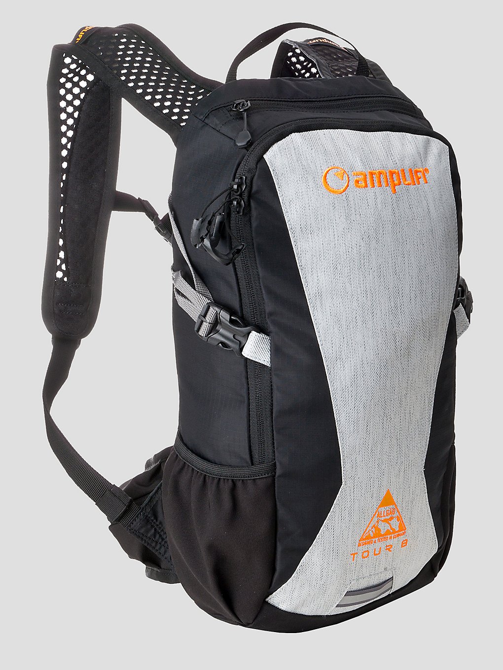 The TR8 is a reduced-to-the-max, super-light, super-slim backpack with a TRIPL3 Flow System vented back and hydration system compatibility. The TR8 is a reduced-to-the-max, super-light, super-slim backpack. Essential features such as a TRIPL3 Flow System vented back, hydration system compatibility, a helmet carry, a sternum strap and hip fins make it awesome for a quick blaze around the trails or a full adrenaline-fueled day out.
