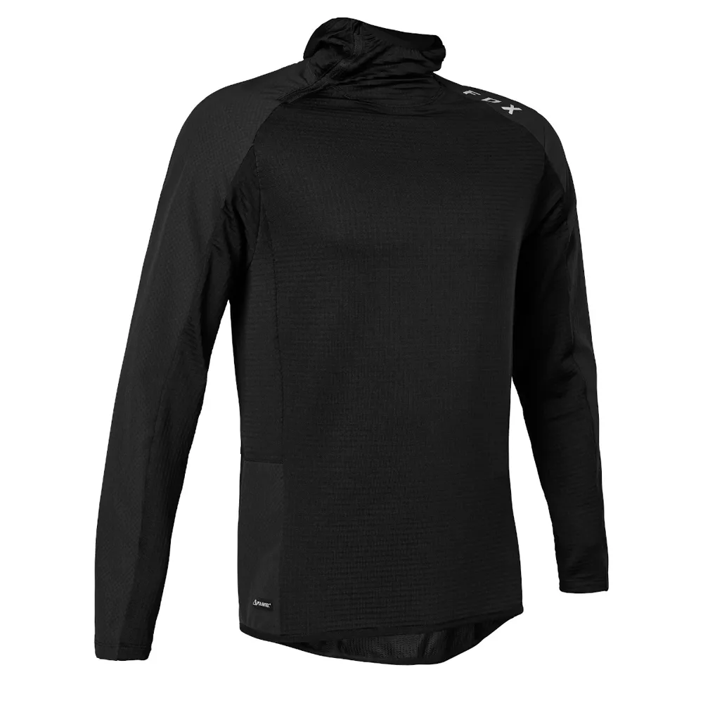 The Fox Defend Thermo Hoodie is an abrasion-resistant mid-layer designed for breathable next-to-skin insulation.?Polartec® Power Grid™ offers channelled insulation that provides enhanced lightweight, moisture-wicking insulation.Fox Defend Thermo Hoodie FeaturesPolartec® Power Grid™Abrasion-resistant, wind-blocking fabric helps keep you warm while descending?Form-fitting hood fits underneath your helmet?Zippered stash pocket on the hip keeps your stuff in place on the roughest rides?Fox Defend Thermo Hoodie MaterialsHPS 31″Polyester 94% / Elastane 6%